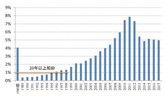 图 92018年6月全球船队建造时间分布图